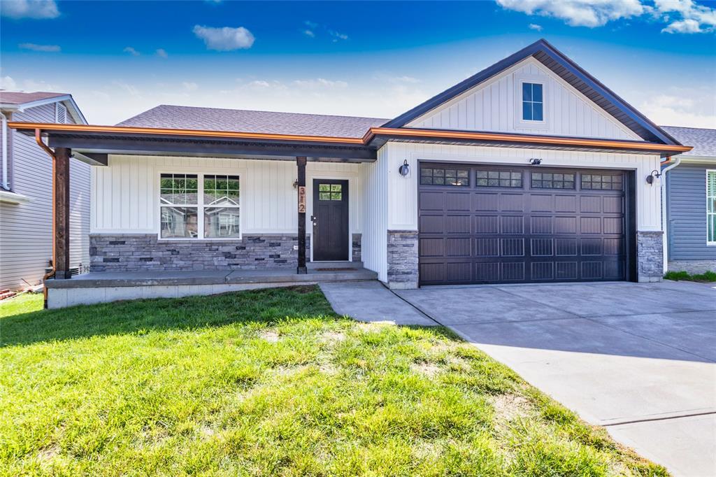 312 Andy Habsieger St, Festus, MO, is a newly built ranch-style home offering 3 bedrooms and 2 bathrooms across 1,357 square feet. The home boasts a modern exterior with a striking combination of stone and siding, complemented by copper gutters that add a touch of elegance. The front porch welcomes you into the open-concept design, where the great room flows seamlessly into the kitchen. The kitchen features a central island, breakfast bar, pantry, and modern appliances. A convenient main-level laundry room is adjacent to the kitchen. The home also includes a 2-car attached garage for extra storage. The partially finished basement offers ample storage and future expansion potential. Enjoy privacy in the backyard with a fenced perimeter. The living room is accented by a cozy faux electric fireplace, perfect for creating a warm, inviting atmosphere. Located in the Festus R-VI School District, this home is conveniently close to highways and shopping, making it ideal for families and commuters.